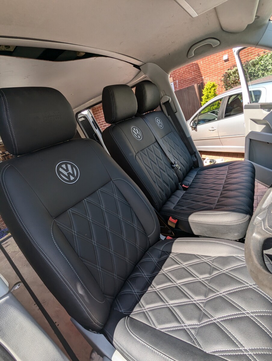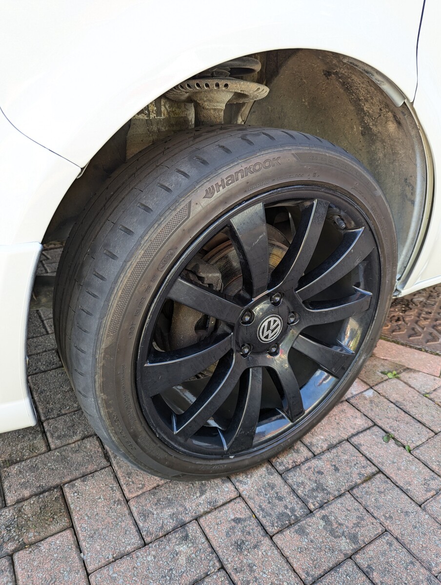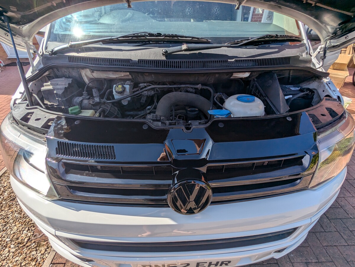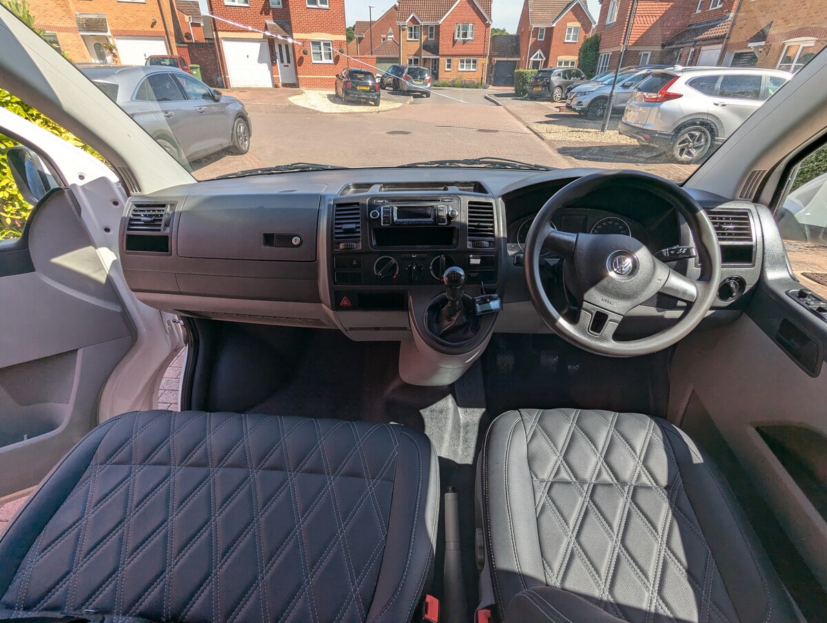 I purchased this VW T5 Transporter at auction after it had been written off. The front end had taken a serious hit — smashed bumper, damaged radiators, damaged grille, bent panels, and broken headlights. The interior was tired and worn from years as a work van and the clutch was completely worn out. With the help of my dad, Jo and I rebuilt it from the ground up into the Storm Trooper — a clean, all-white T5 with a sportline front end, gloss black alloys, quilted leather VW-branded seats, and a fully refreshed interior. We did everything ourselves, from sourcing the parts to the mechanical work (including replacing the clutch) to the bodywork and paint - I learned bodywork and painting.